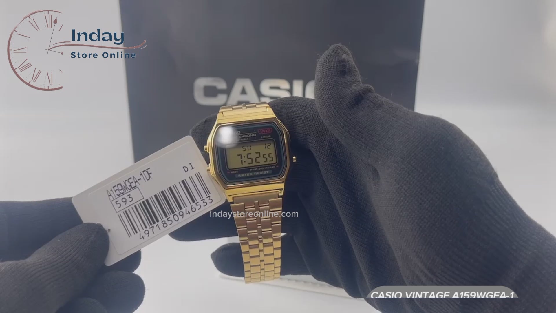 Casio Vintage Unisex Watch A159WGEA-1 Digital Gold Plated Stainless Steel Self-adjustable Band