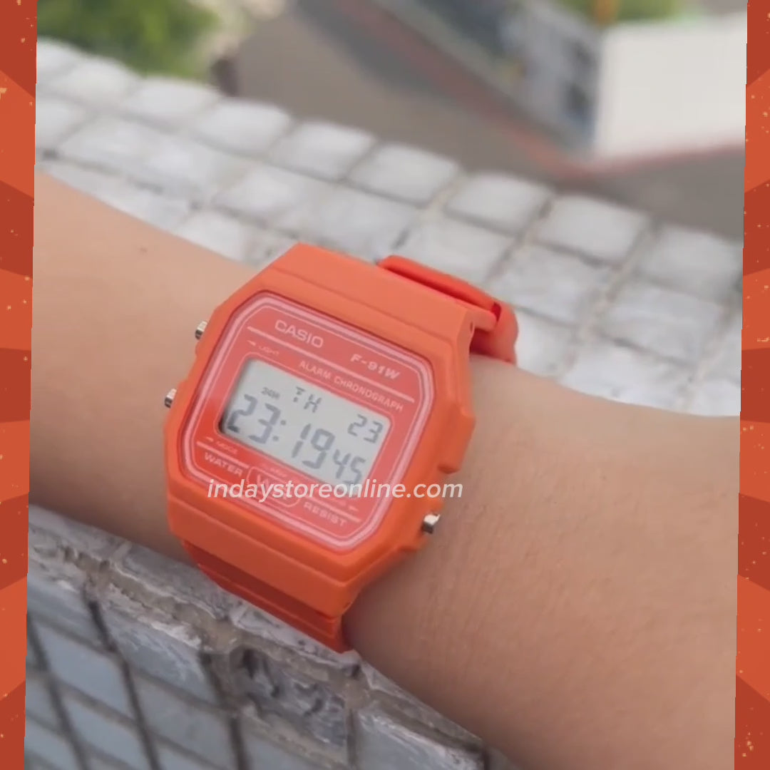 Casio Digital Women's Watch F-91WC-4A2 Digital Orange Color Resin Band Resin Glass Battery Life 7-Years