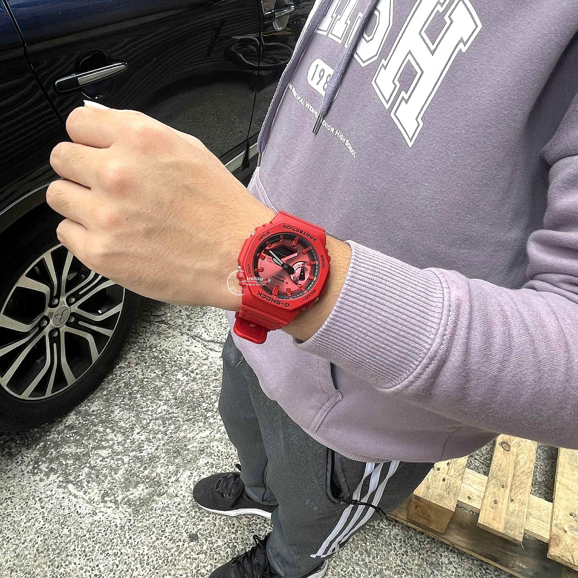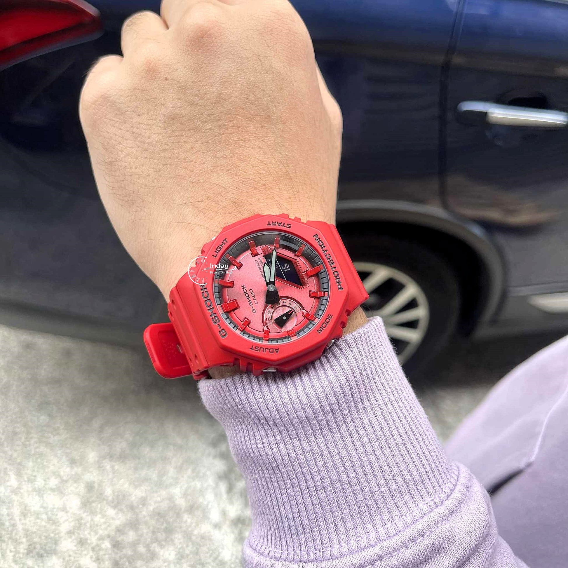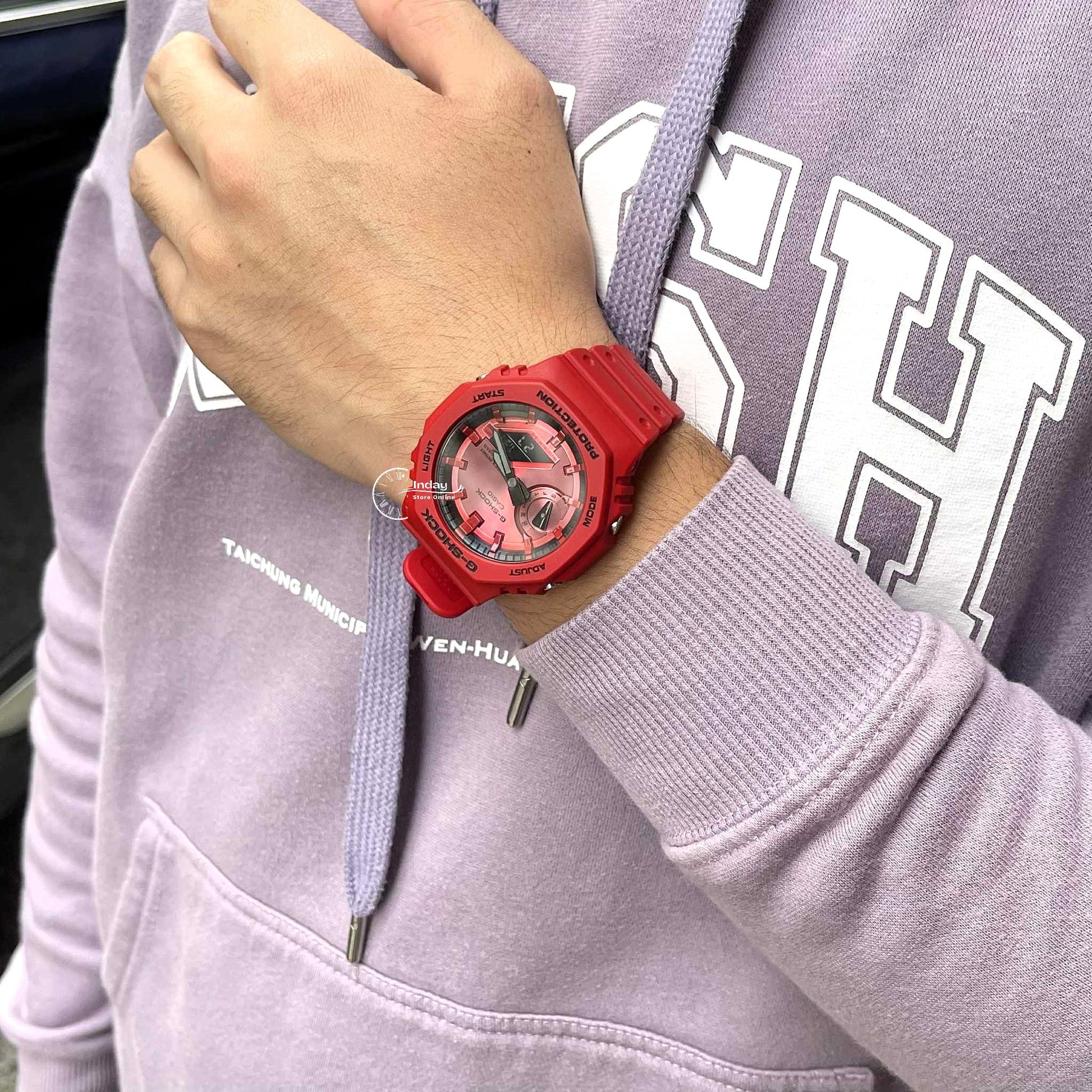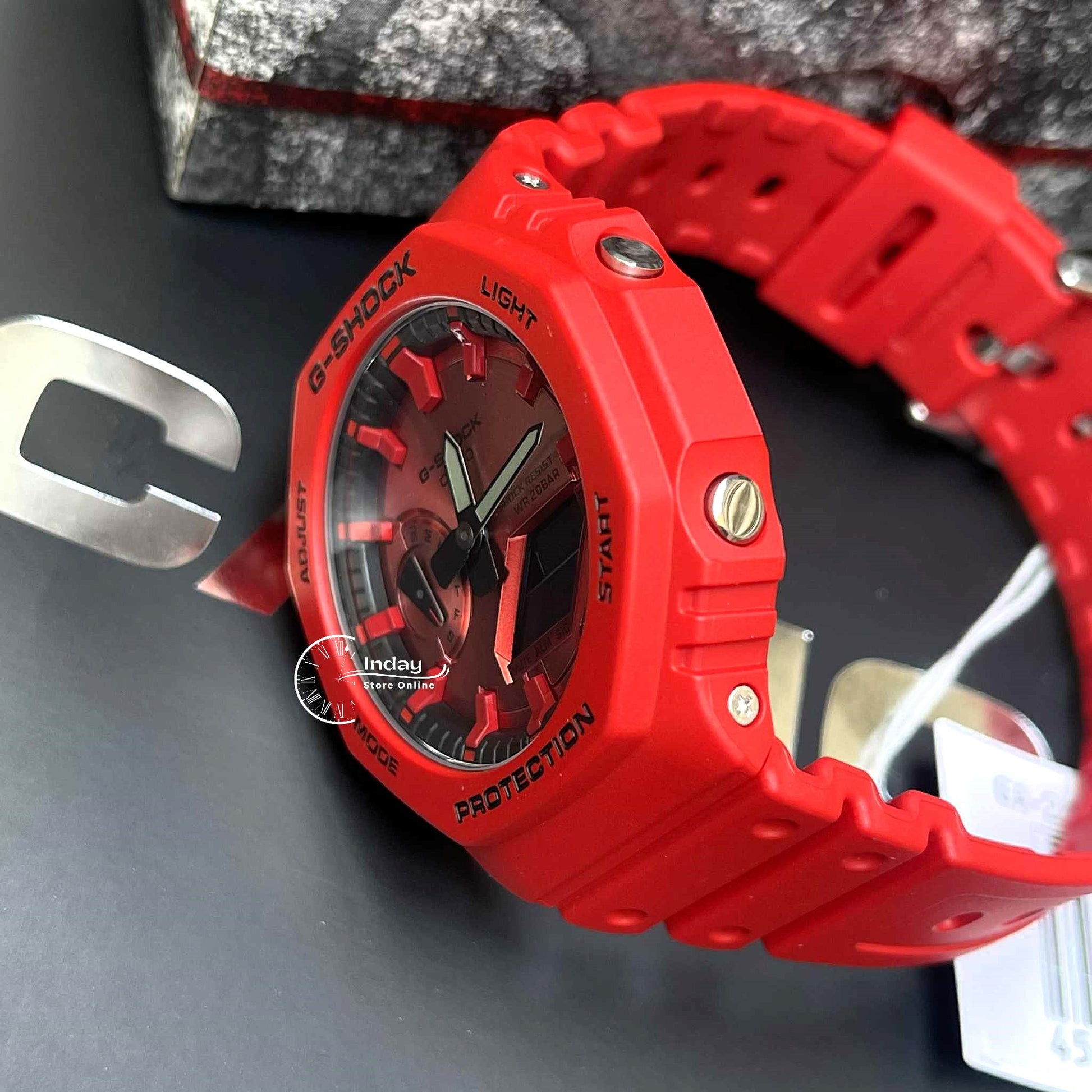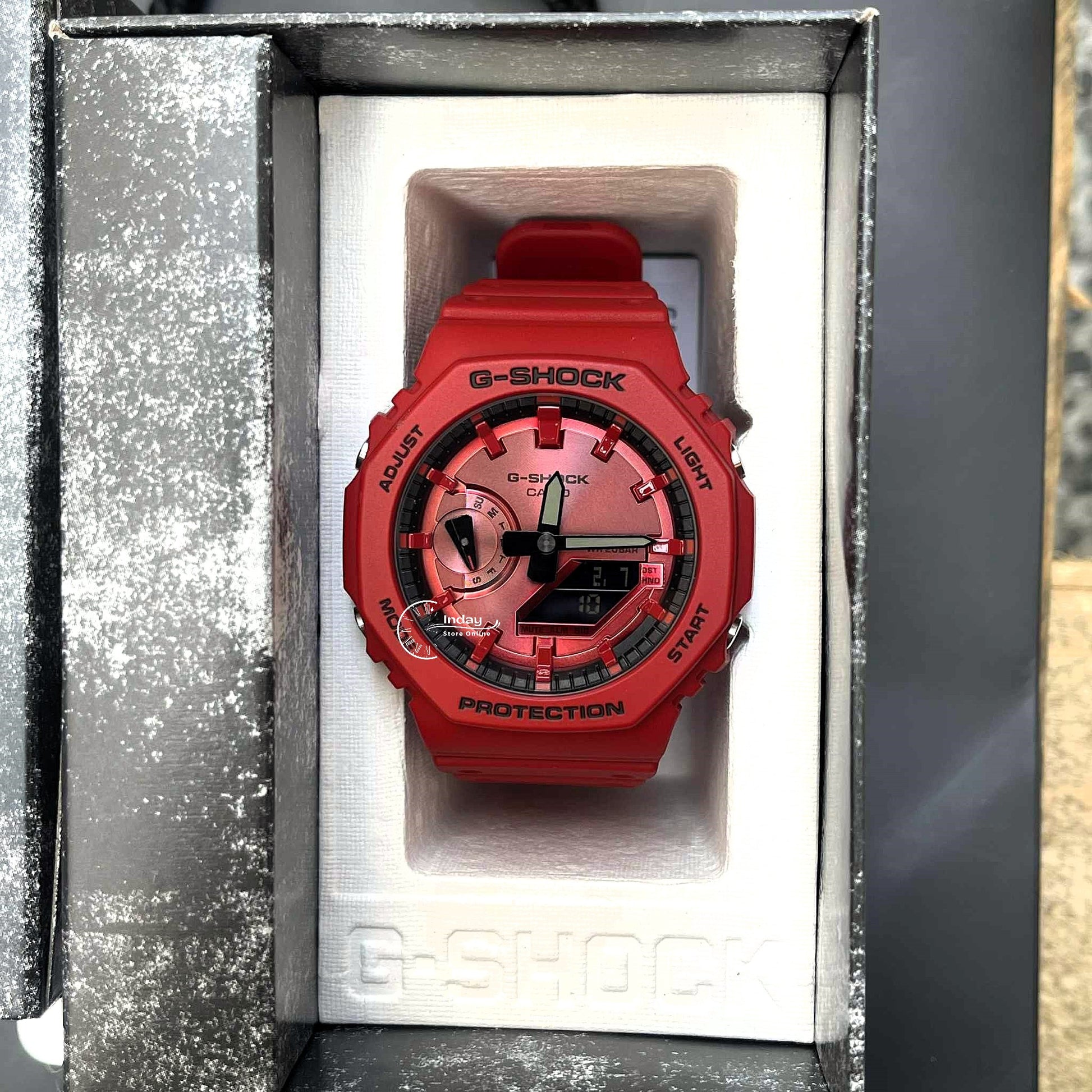 Indulge your passion for bold, bright toughness with an iconic G-SHOCK style in the vivid red loved by trendsetters and athletes the world over. Introducing four iconic styles in G-SHOCK brand red: the ever-popular 5600, a direct legacy of the first-ever G-SHOCK; the 6900, a timeless cultural icon still loved by people of all ages; the 110 with strong, bold oversized case; and the streamlined beauty of the 2100 with octagonal bezel. Treated to a vapor deposition finish in red, the watch face blends seamlessly with the red band and bezel, while the dramatic textural contrast exudes strength and intensity. The inverted LCD and touches of black incorporated throughout the design pop against the vibrant red color scheme, the black accents enhancing the impact of the overall design to convey the uniquely tough G-SHOCK identity. Key resin components for the bezel and band are made with bio-based resin, a material expected to help reduce environmental impact. These vibrant watches make a great accessory for your street-savviest fashions and your most casual styles.