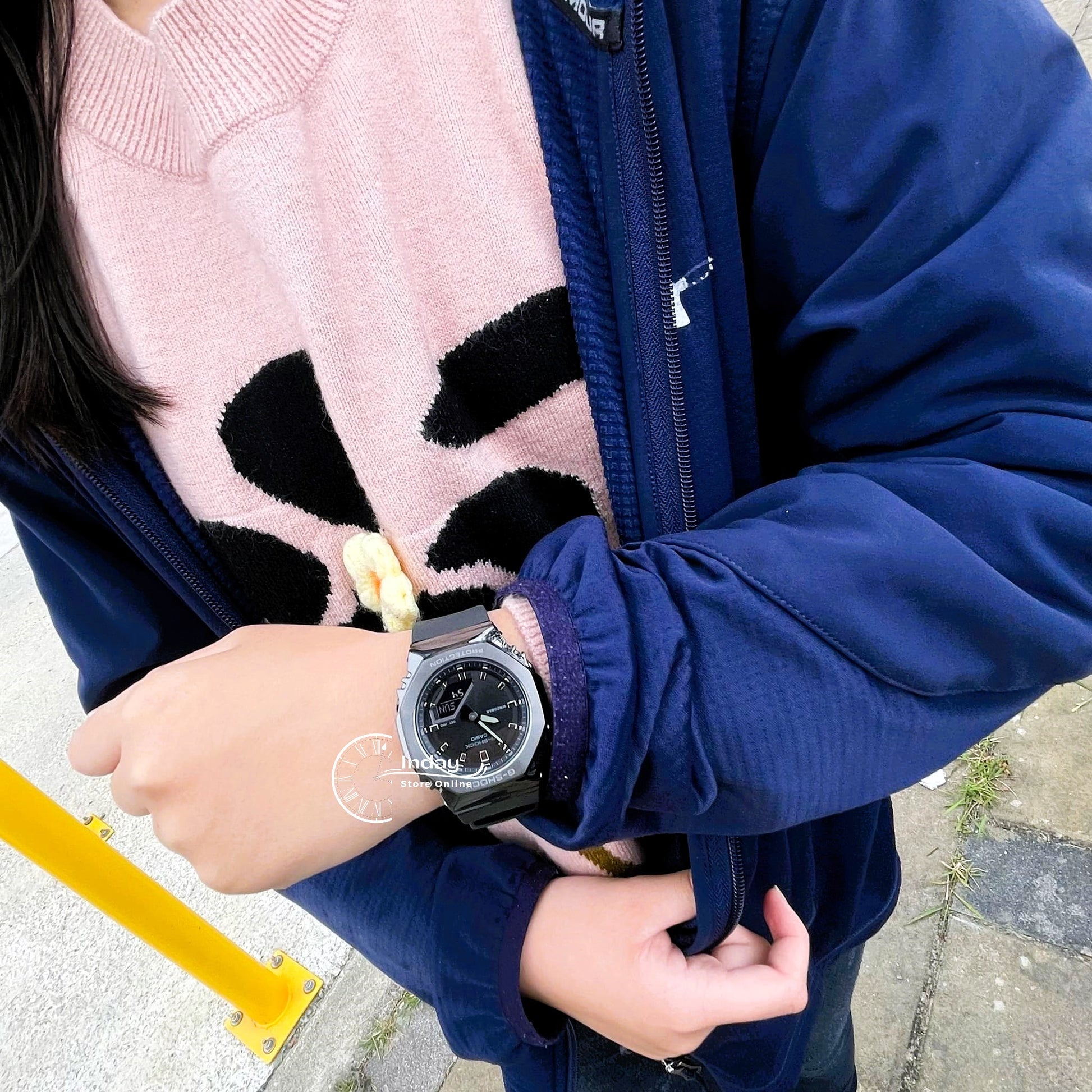 Strong, steely, stylish — Go metal-clad, now in radiant shades of elegant color. The octagonal GM-S2110 takes on three new color schemes — pink gold and black, pink gold and pink beige , and dark gray. Metal elements in the dial add shine and texture, while the compact size ensures a comfortable fit for slimmer wrists. The sophisticated, minimalist design beautifully complements whatever you’re wearing, from stylish fashion to casual cool. Key resin components in the band are made with bio-based resin produced from renewable organic resources, a material expected to help reduce environmental impact.