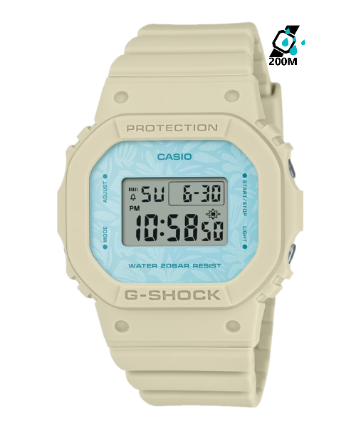 Immerse yourself in the healing comfort of nature with a true-to-you G-SHOCK in flora-inspired colors and botanical designs. The main resin components are made with bio-based resins produced from renewable organic resources. This material is expected to help curb CO2 emissions and otherwise reduce environmental impact. Choose your favorite model, in a slimmer, more compact design and comfy color palette. The iconic GMD-S5600 features a dial printed with herbal design. The ever-popular octagonal GMA-S2100 displays an indicator in the shape of a basil leaf motif on the inset dial at the 9 o’clock position.