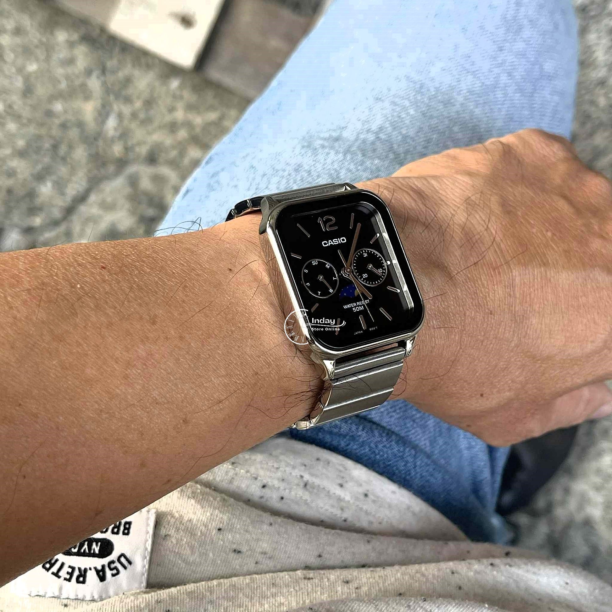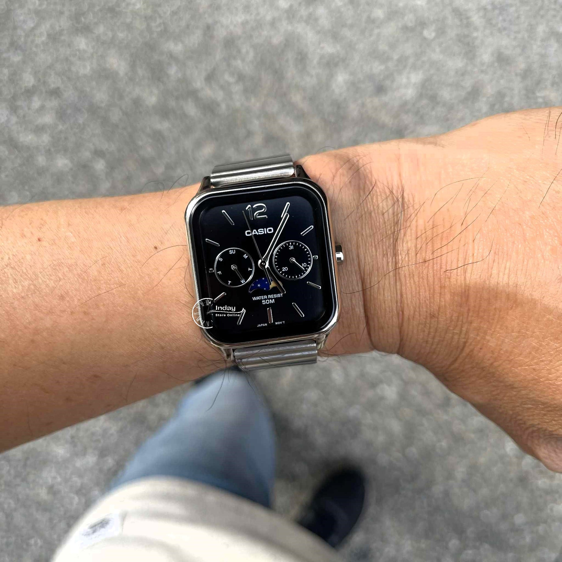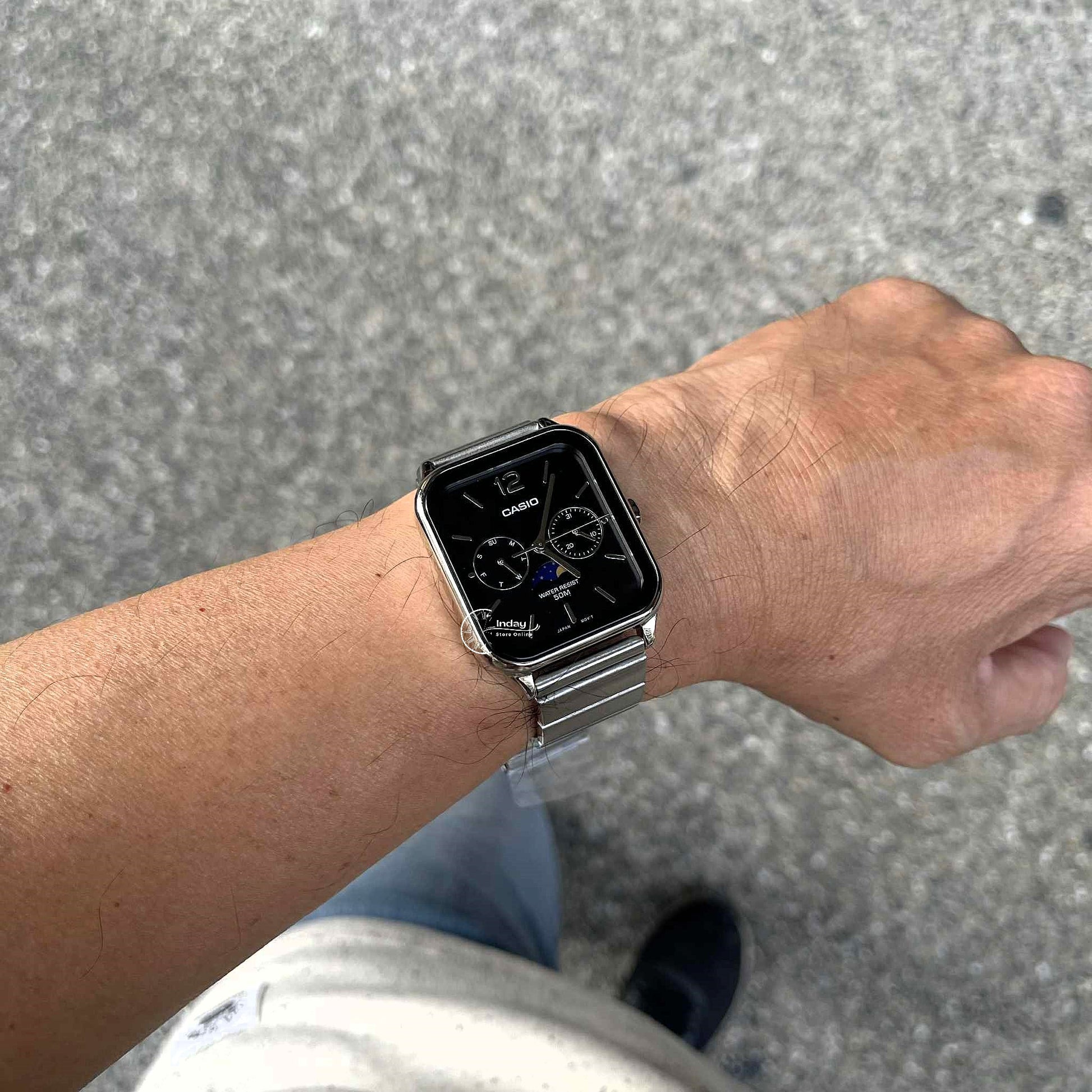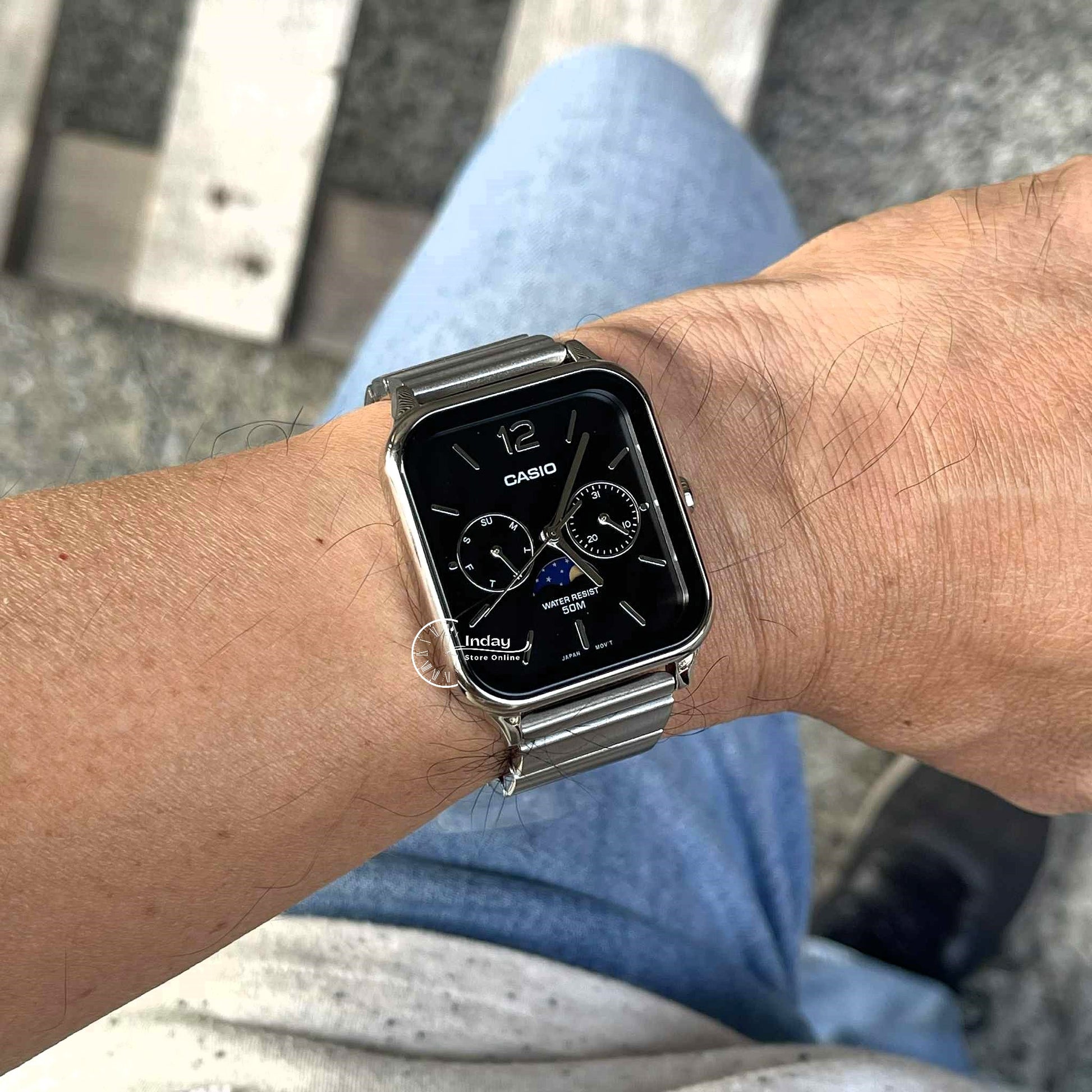 Casio Standard Unisex Watch MTP-M305D-1A Mineral Glass Moon phase Stainless Steel Band