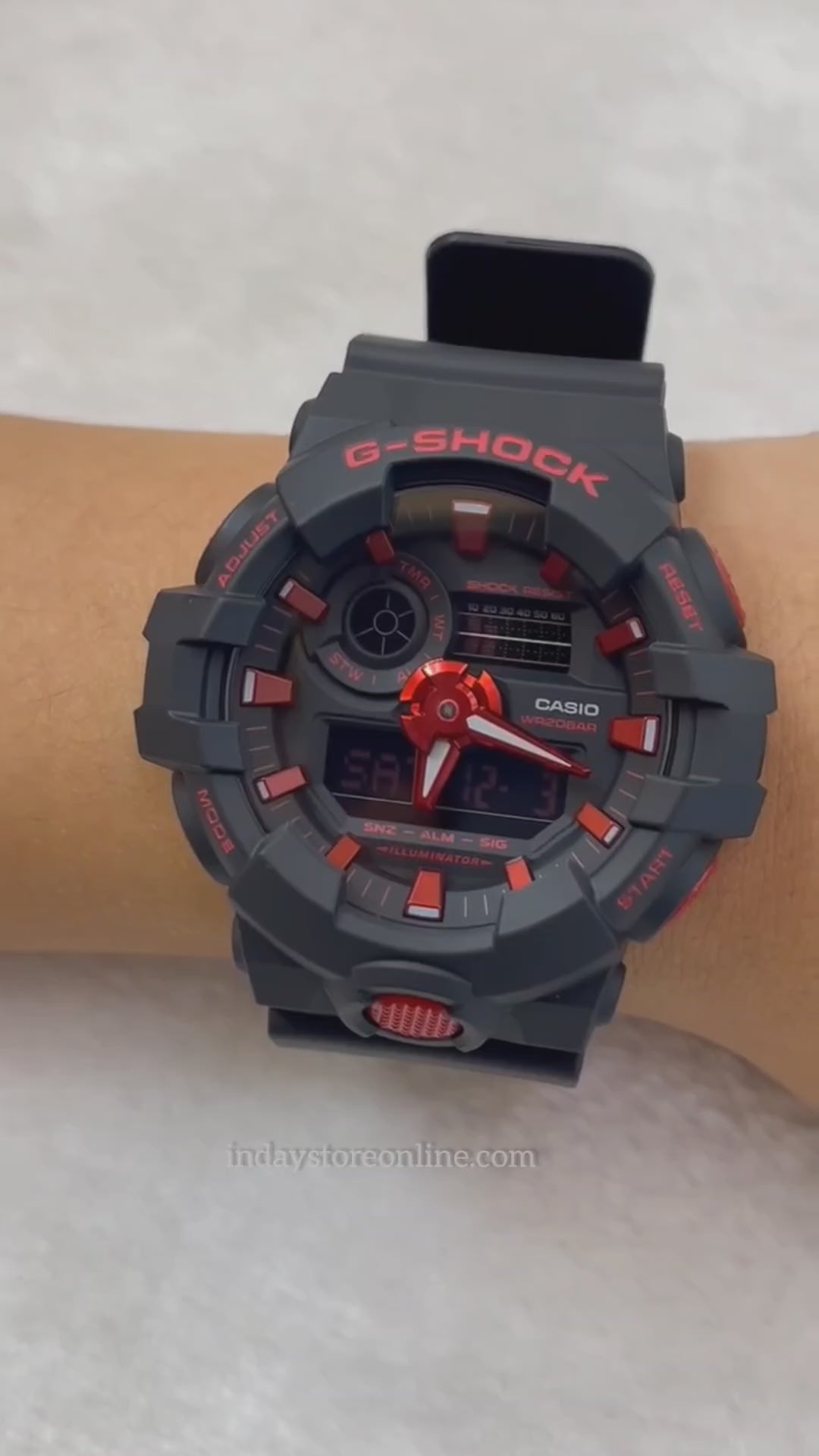 Make a bold, powerful statement with the Ignite Red line in the iconic black and fiery red that embody the ultimate toughness of the G-SHOCK brand. We have injected a few of our flagship models — the octagonal GA-B2100 with Bluetooth and solar power; the oversized, solar-powered GAS-100; the GA-100, GA-2200 and GA-700 with signature oversized case — with the strength and passion of the black and red G-SHOCK brand colors. Deep, blazing red accents against striking, dark black give these watches, and the wrist that wears them, a kick of cool confidence.