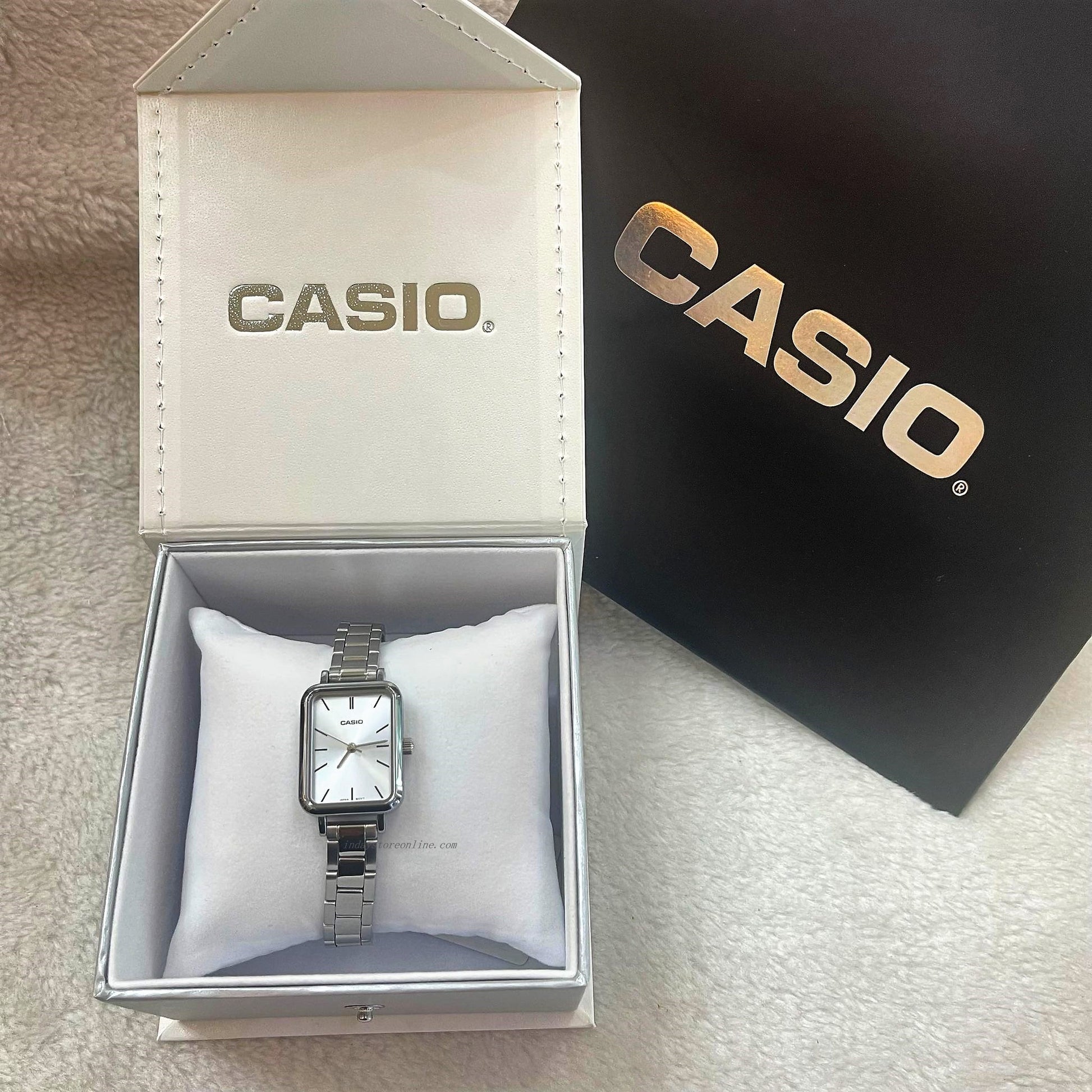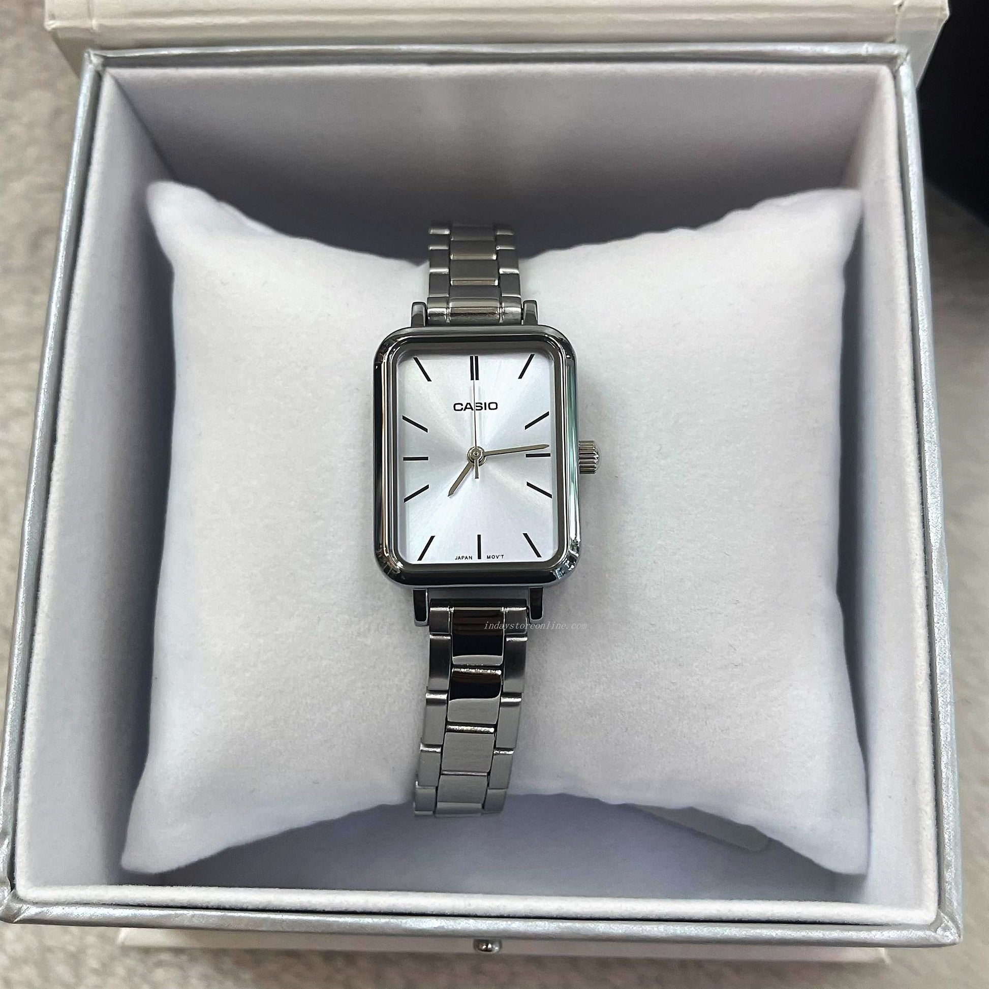 Casio Standard Women's Watch LTP-V009D-2E Square Type Silver Plated Stainless Steel Strap